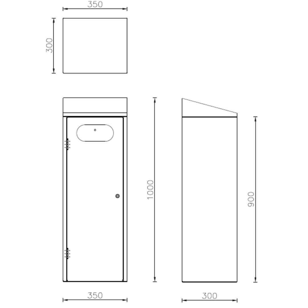 - Afmetingen: B350xD300xH1000mm.