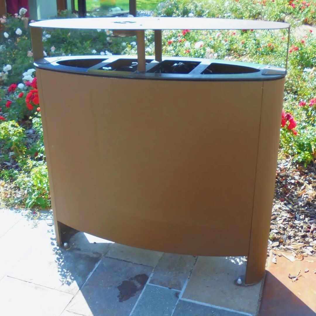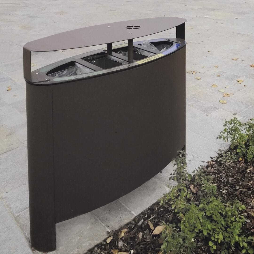 Genesi afvalscheiding prullenbak heeft 3 bakken en is ideaal voor binnen- en buitengebruik. Gemaakt van duurzaam gegalvaniseerd staal, biedt het een inhoud van 130 liter verdeeld over drie compartimenten. Compleet met een sigaretten dover en dak. De afmetingen zijn 1021 mm lang, 385 mm breed en 1046 mm hoog. Deze prullenbak is geschikt voor kantoren, scholen, winkelcentra en parken. Verankering op het maaiveld mogelijk middels voorgeboorde gaten in het onderstel.