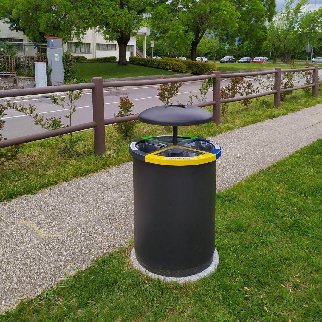 Afvalscheiding prullenbak Fly 4 met betonnen sokkel