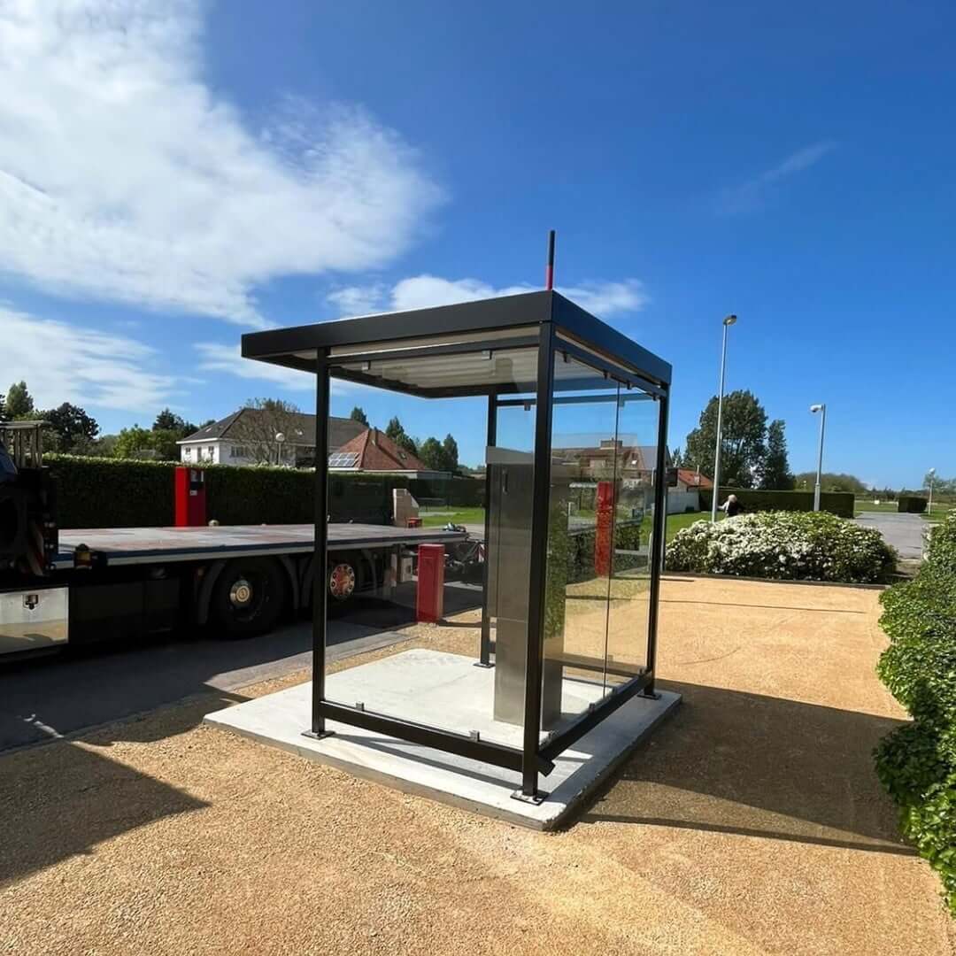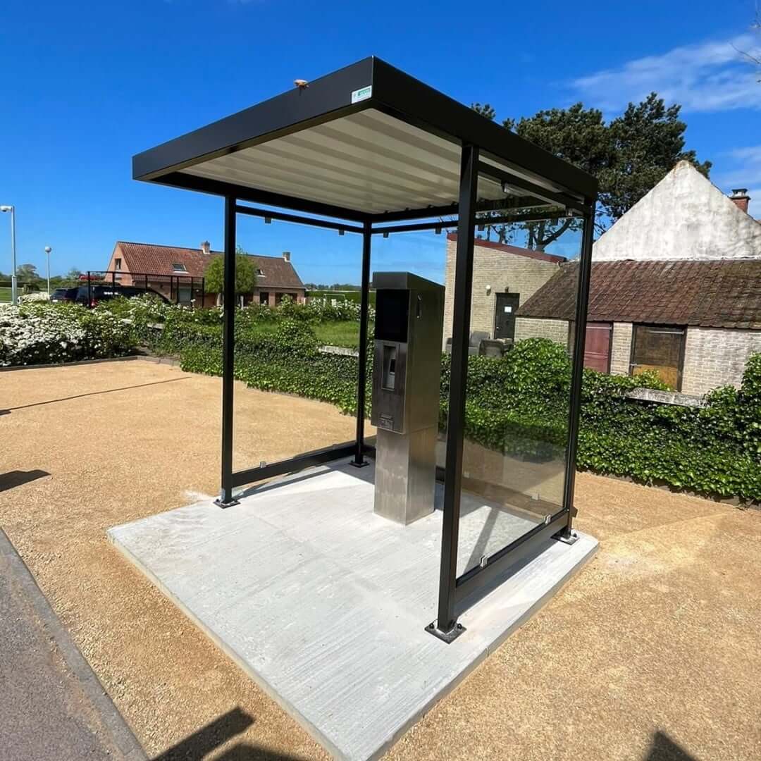 Is de betaalautomaat overkapping bestand tegen weer en wind? Zeker, de constructie van thermisch verzinkt staal is ontworpen voor langdurige buitentoepassing.