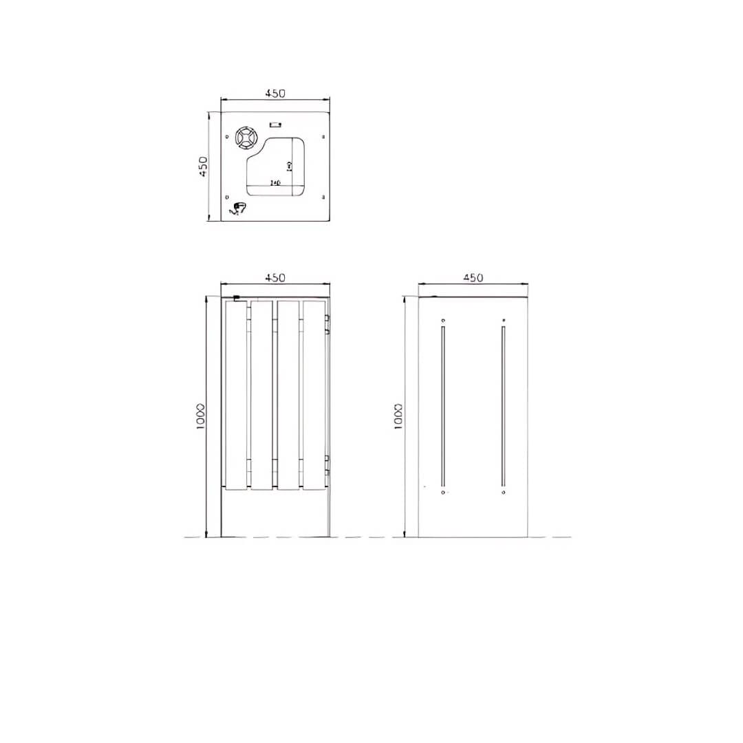 De Isola buitenprullenbak is uitgerust met verzinkte containers die gemakkelijk te verwijderen zijn, wat het legen en schoonmaken vereenvoudigt. Met een inhoud van 95 liter biedt deze bak voldoende ruimte voor afvalverzameling, waardoor hij ideaal is voor drukbezochte plekken. De afmetingen van de bak zijn B450xD450xH1000 mm, wat hem compact genoeg maakt om in diverse ruimtes te plaatsen, zonder dat hij in de weg staat.