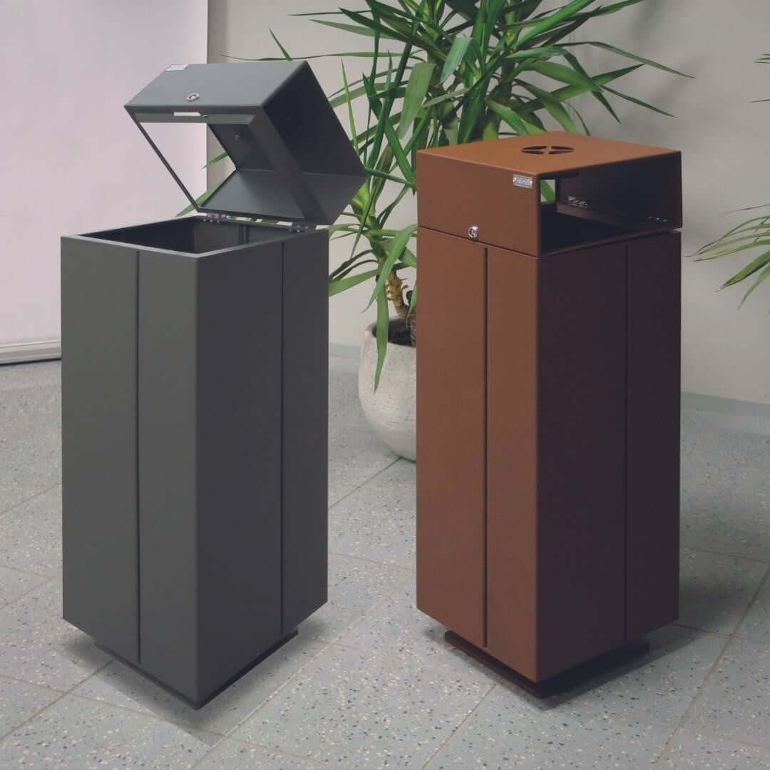De buitenafvalbak Mercurio is beschikbaar in elke gewenste RAL-kleur. Hierdoor kan de afvalbak naadloos worden geïntegreerd in de bestaande omgeving. Daarnaast is de buitenafvalbak ook verkrijgbaar in een cortenstaal look, wat een moderne en industriële uitstraling geeft aan de buitenruimte.
