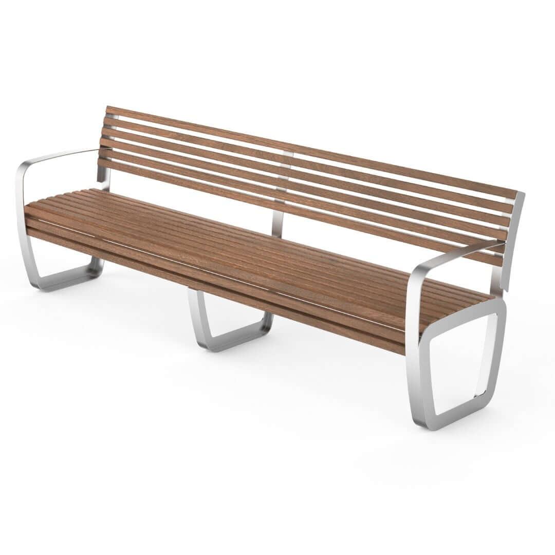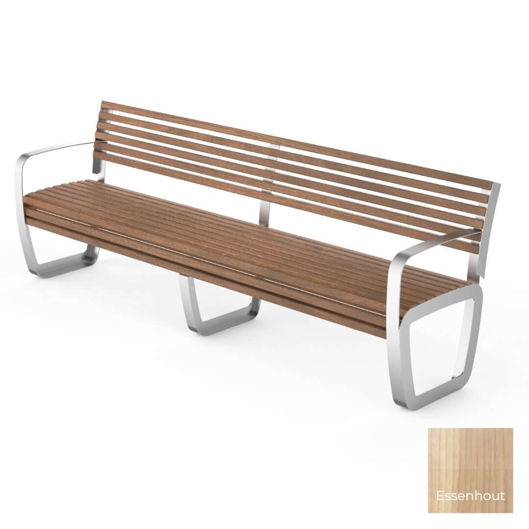 De latten van de MLA 240 zijn beschikbaar in diverse duurzame houtsoorten, elk met unieke eigenschappen. Kies uit essenhout, iroko hardhout of sapeli mahonie. Essenhout straalt warmte uit, iroko hardhout staat bekend om zijn duurzaamheid, en sapeli mahonie heeft een diepe, rijke uitstraling. Deze houtkeuzes maken het mogelijk de parkbank te personaliseren op basis van jouw stijl en de gewenste uitstraling van je buitenruimte.