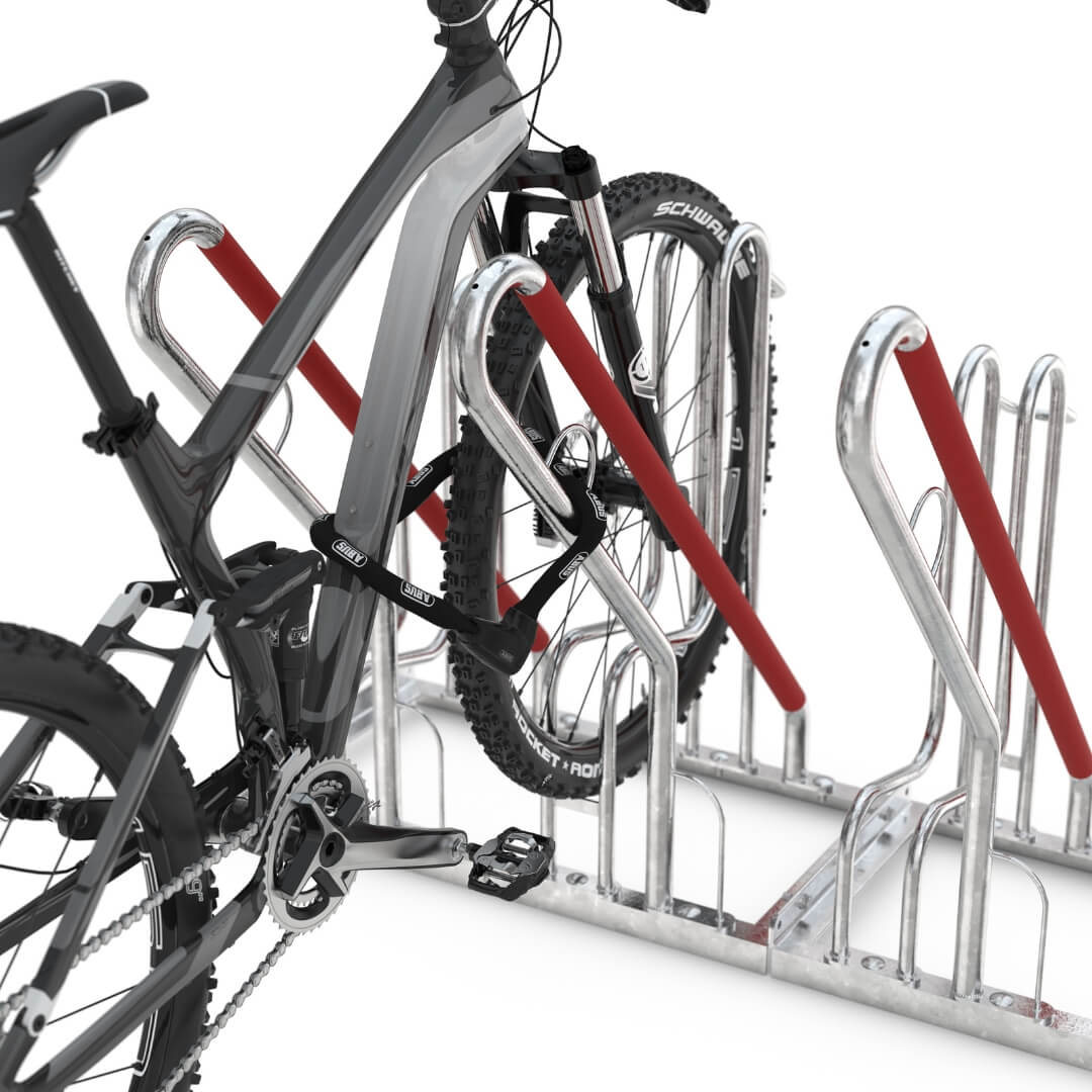 Dankzij de L-vormige ondersteuning biedt fietsenrek 4500 extra stabiliteit aan het voorwiel van de fiets. Dit zorgt ervoor dat de fiets recht en veilig blijft staan, wat het risico op omvallen of beschadigingen minimaliseert. Dit maakt een fietsenrek met extra wielondersteuning een uitstekende keuze voor drukbezochte openbare ruimtes.