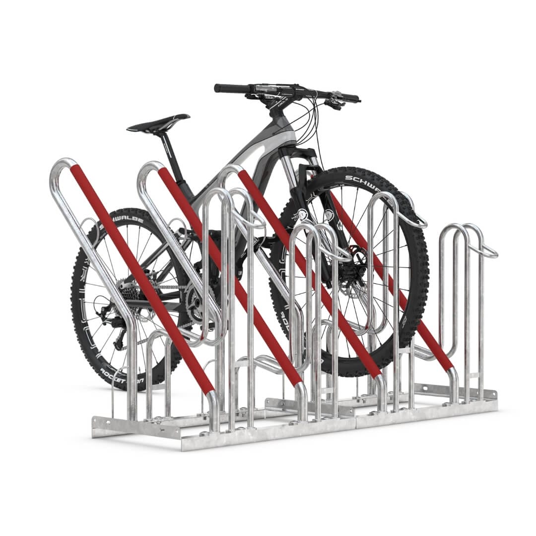 Fietsenrek 4500: met stootbescherming en extra voorwiel ondersteuning