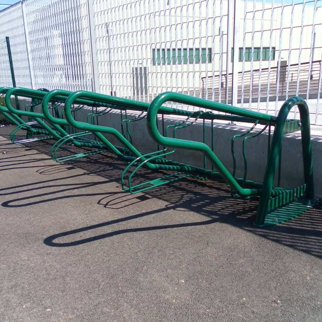 - Aanpasbaar design: poedercoating in elke RAL-kleur maakt het fietsenrek passend in elke omgeving.