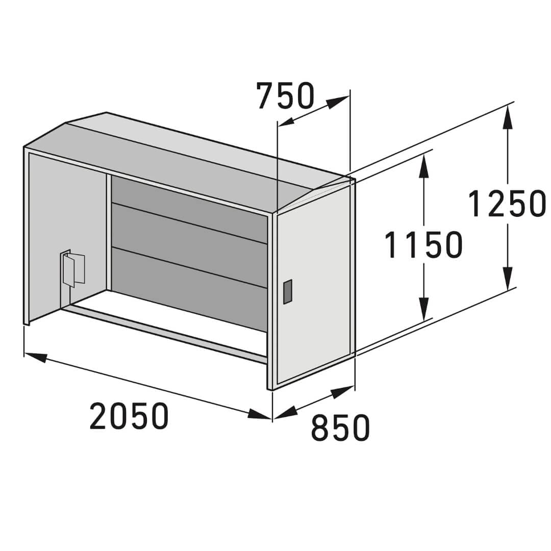De BikeBox 1 is uitgerust met een cilinderslot en een praktische parkeerrail, waardoor je fiets veilig en stabiel geparkeerd kan worden. Dankzij de afmeting van 2050 x 850 x 1250 mm biedt deze fietskluis voldoende ruimte voor elke fiets. Met een gewicht van ca. 95 kg is de BikeBox 1 stevig en weerbestendig, ideaal voor plaatsing in openbare ruimtes, bedrijven of particulieren die hun fiets veilig willen stallen.
