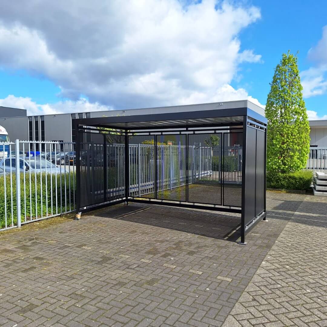 Onze fietsoverkapping Bonn is een echte allrounder. Verkrijgbaar in vele maten, te voorzien van diverse opties en leverbaar in alle RAL kleuren. Een stevige fietsenstalling voorzien van plat trapezium dak. Fietsoverkapping Bonn kan geheel naar wens worden ingedeeld en samengesteld. Ook kunnen wij volledig afwijken van de standaard en een maatwerk overkapping produceren. Een combinatie met een rookabri behoord o.a. tot de mogelijkheden.