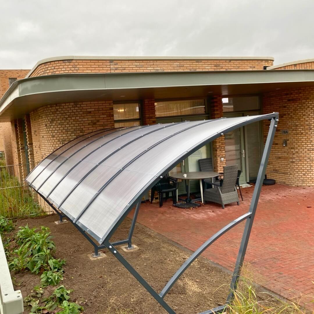 Het elegante, gebogen dak is uitgevoerd in hoogwaardig polycarbonaat. Dit materiaal:
