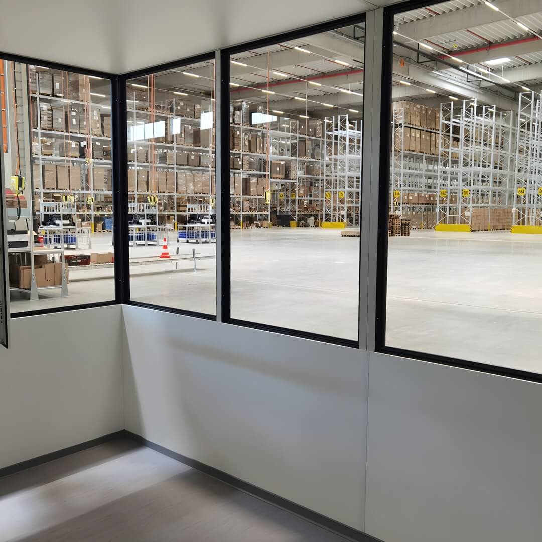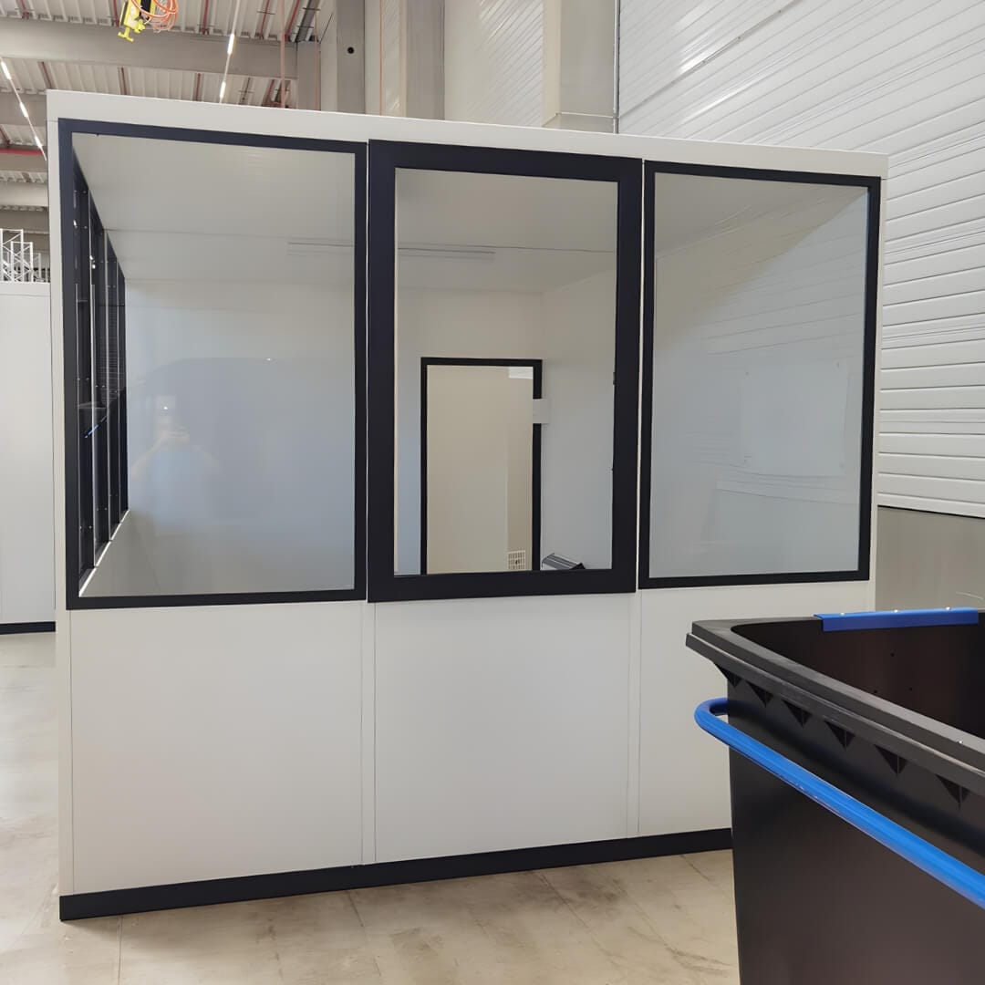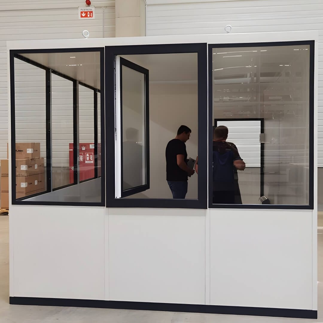 Kantoorunit 3x2m W-serie W10 met vloer, geschikt voor inpandig gebruik. Opgebouwd uit een modulaire constructie van staal en ESG veiligheidsglas. Het frame van de unit is van verzinkt, corrosiebestendig staal. Onze bureelunit W-serie wordt volledig gemonteerd geleverd. Inzetbaar voor diverse doeleinden zoals kantoor, vergaderruimte of operators unit. Onze kantoorunits zijn te voorzien van diverse (elektra) opties.