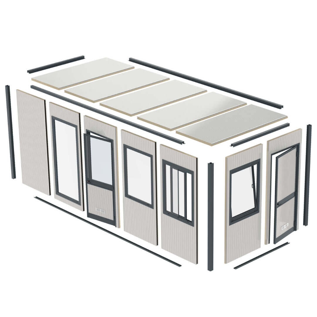 Voor maatwerk zijn er diverse wandpanelen beschikbaar: volledig gesloten, met vast raam, deur met raam, draai-/kiepraam, schuifraam of volledig glas. De diepte is minimaal twee panelen breed (2.456 mm) en maximaal vier panelen. De lengte kan onbeperkt worden uitgebreid, wat deze unit ideaal maakt voor tijdelijke of permanente oplossingen.