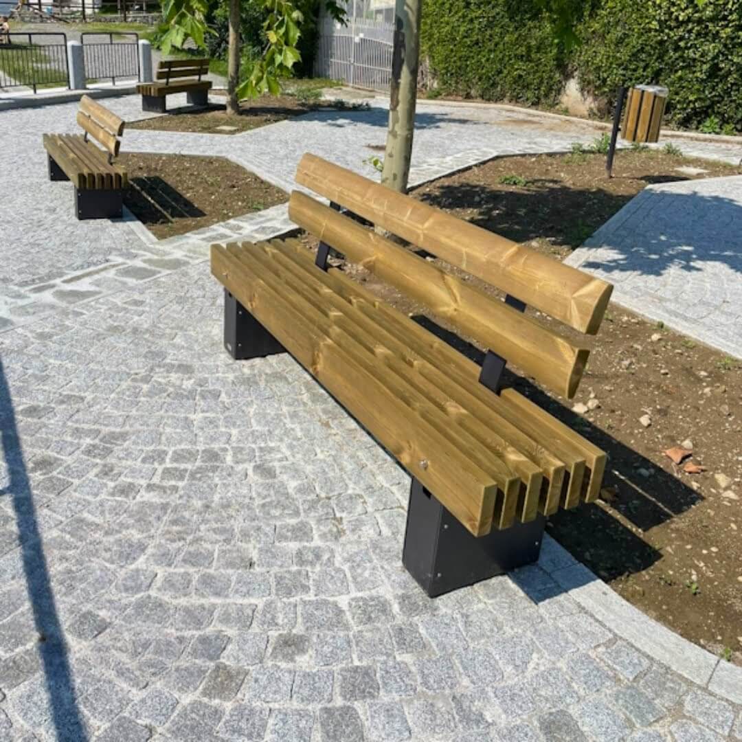 Het houten gedeelte van parkbank Porto lineair bestaat uit grenenhouten latten, een populaire houtsoort vanwege de combinatie van duurzaamheid en betaalbaarheid. Grenenhout zorgt voor een natuurlijke uitstraling en past perfect in groene omgevingen zoals parken, pleinen of tuinen.
