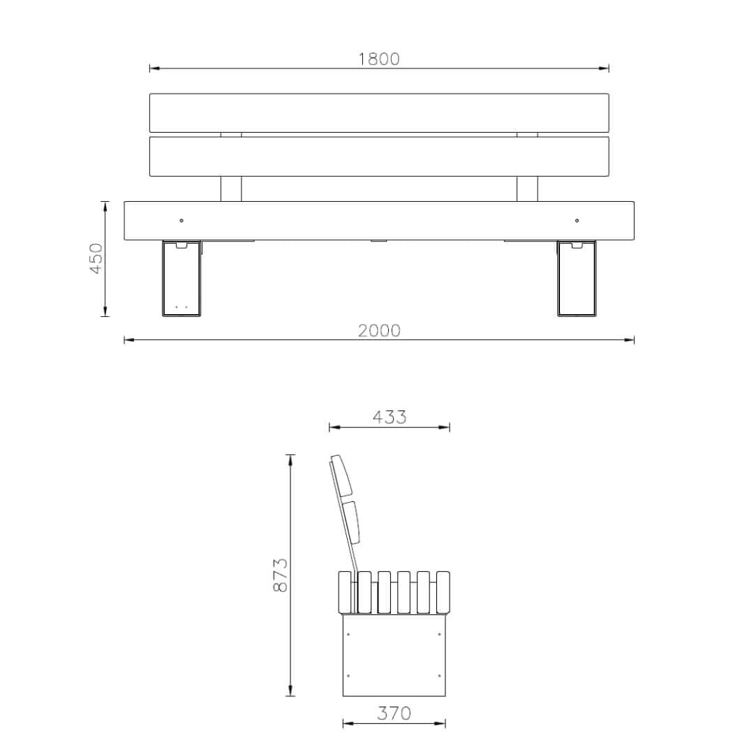 Het onderstel van parkbank Porto lineair is gemaakt van verzinkt staal, wat bekend staat om zijn weerstand tegen roest en corrosie. Met een poedercoating in een RAL-kleur naar keuze zorg je voor extra bescherming en een unieke uitstraling die aansluit bij elke omgeving.