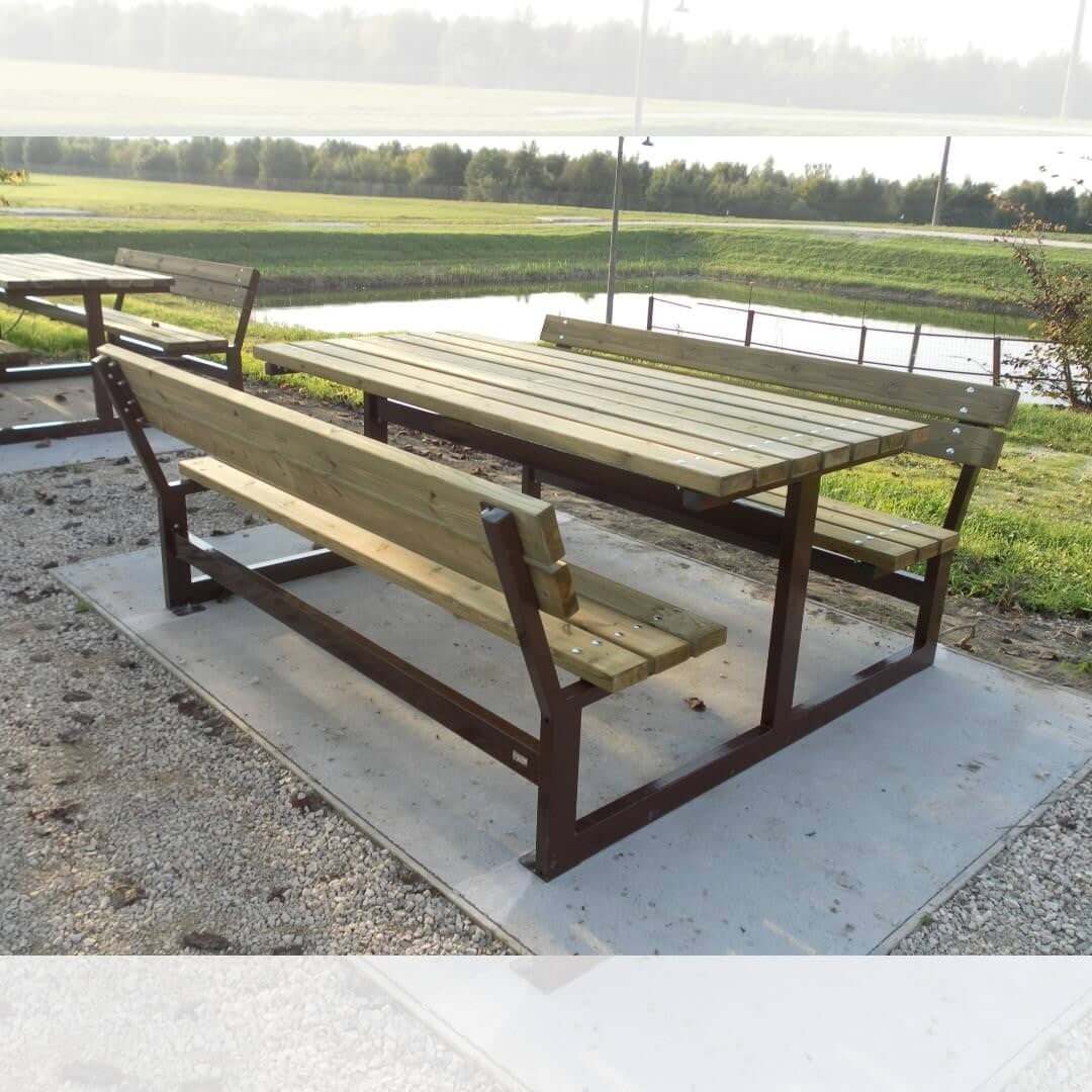 Picknickset Break Point, is een robuuste en duurzame picknickset met een stalen frame (verzinkt en gepoedercoat in RAL-kleur) en houten latten. Deze set meet L2000xB1968xH884mm en biedt een tafel met twee banken, ideaal voor openbare en privéruimtes. Dankzij één verlengde zijkant is de tafel toegankelijk voor rolstoelgebruikers. De montage is eenvoudig door voetplaten met voorgeboorde gaten, waardoor deze stevig te verankeren is.