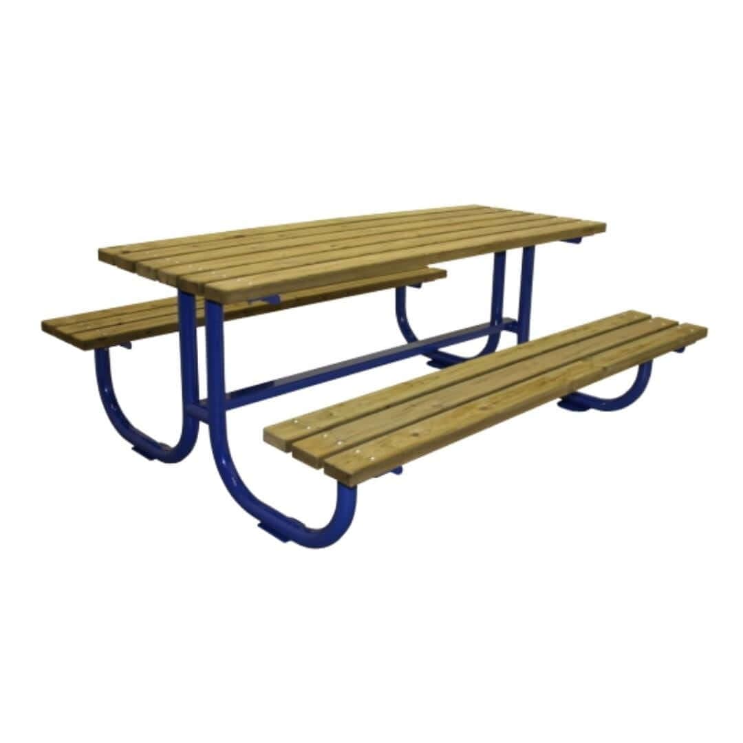 Picknicktafel Family is een robuuste picknicktafel voor 6 personen, perfect voor openbare ruimtes zoals parken en pleinen. Het onderstel is gemaakt van verzinkt staal, afgewerkt met poedercoating in een RAL-kleur naar keuze, en de zitting en tafelblad zijn van duurzaam grenenhout. Met afmetingen van 2000 mm lengte, 1800 mm breedte, een zithoogte van 450 mm en tafelbladhoogte van 800 mm biedt deze set comfortabel zitplezier voor elke buitenomgeving.