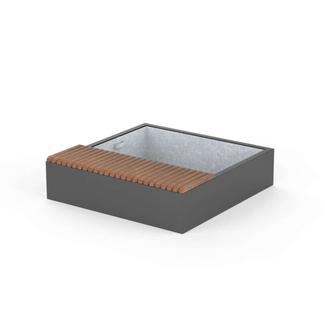 De Cameleo S plantenbak met bank biedt een combinatie van functionaliteit en comfort voor stedelijke ruimtes. Verkrijgbaar in gepoedercoat staal voor langdurige bescherming of in RVS met hoge weerstand tegen omgevingsfactoren. Met een houten zitting van sapeli mahonie of iroko hardhout, gegalvaniseerd inzetstuk en afvoersysteem is deze plantenbank ideaal voor pleinen en parken. Flexibel in gebruik dankzij het afneembare verplaatsingssysteem en perfect te combineren met ander straatmeubilair van Umfeldt.