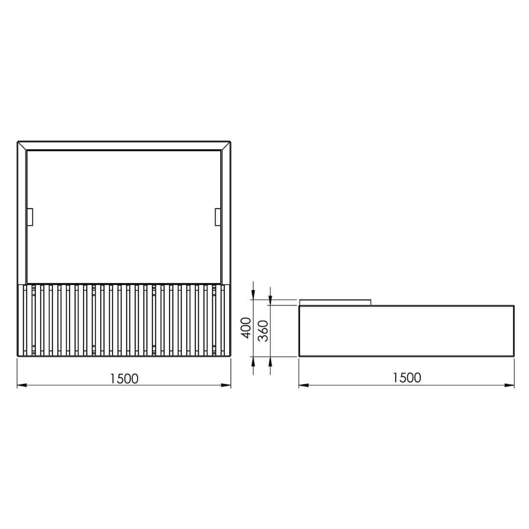 Met afmetingen van L1500xB1500xH400mm biedt de plantenbak voldoende ruimte voor beplanting. Plantenbak met bank aanschaffen? Dankzij het afneembare systeem kan de Cameleo S plantenbak met bank eenvoudig worden verplaatst met een kraan, wat flexibiliteit biedt bij plaatsing of herinrichting.