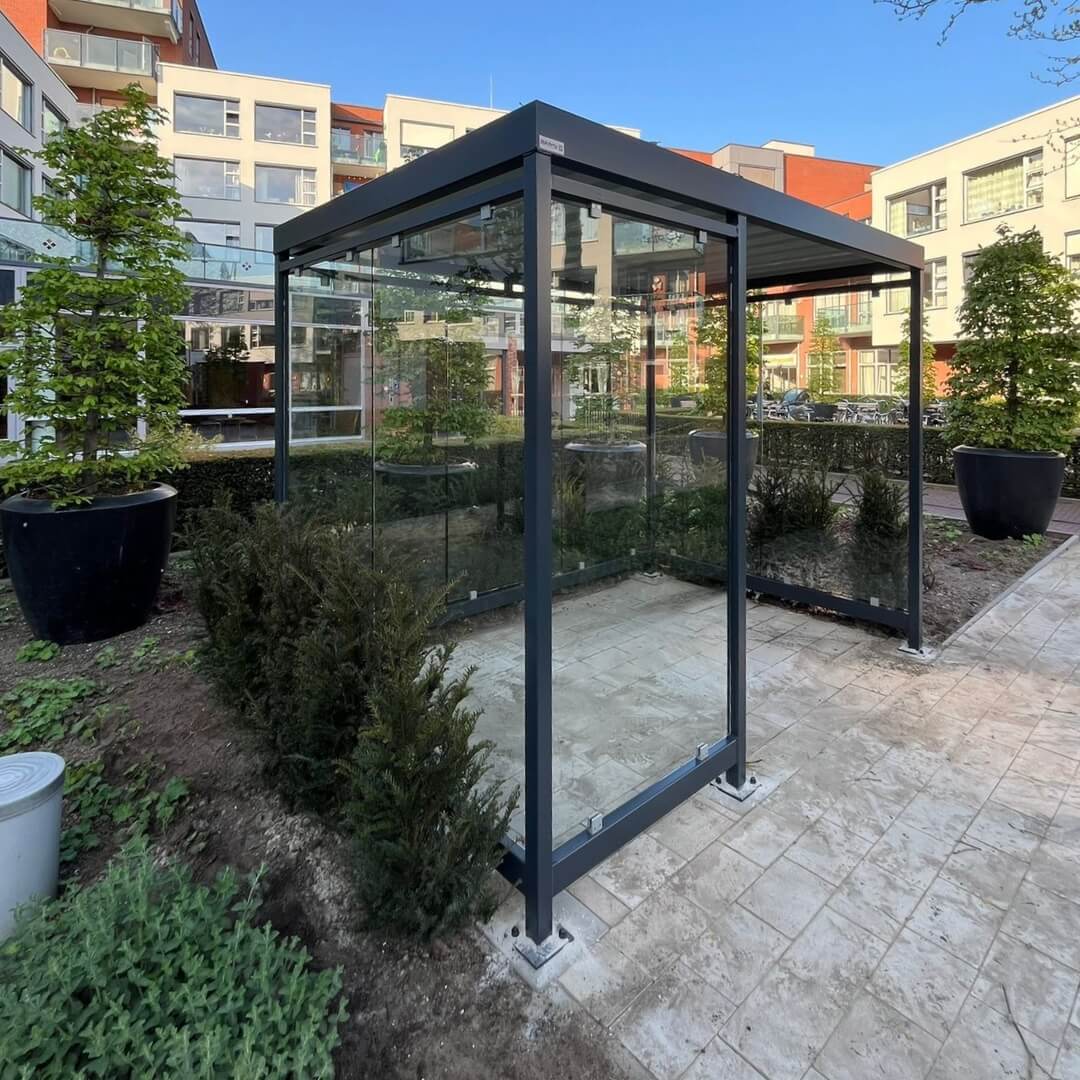 De rookcabine is bovendien eenvoudig te combineren met een fietsoverkapping, voor een multifunctionele inrichting van de buitenruimte.