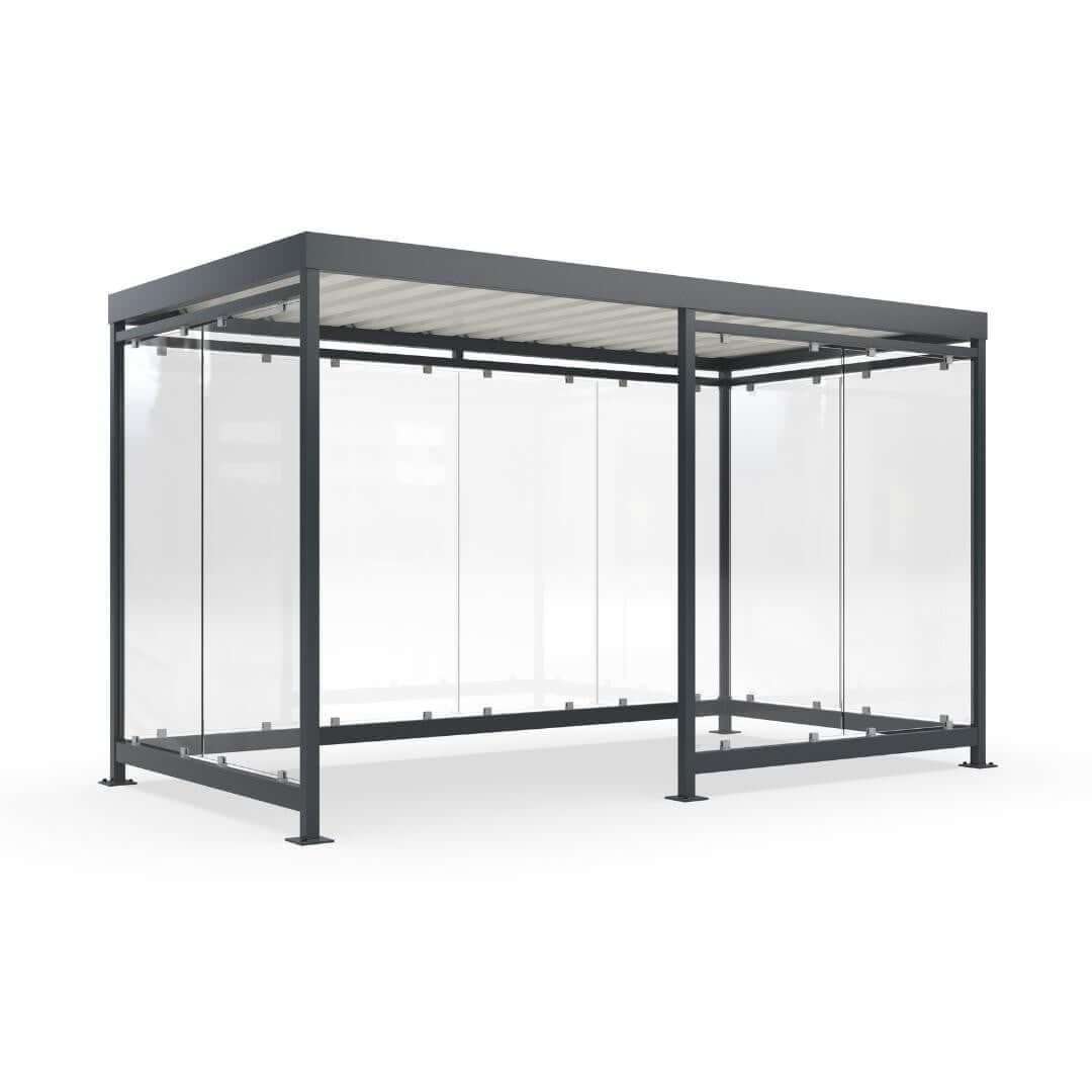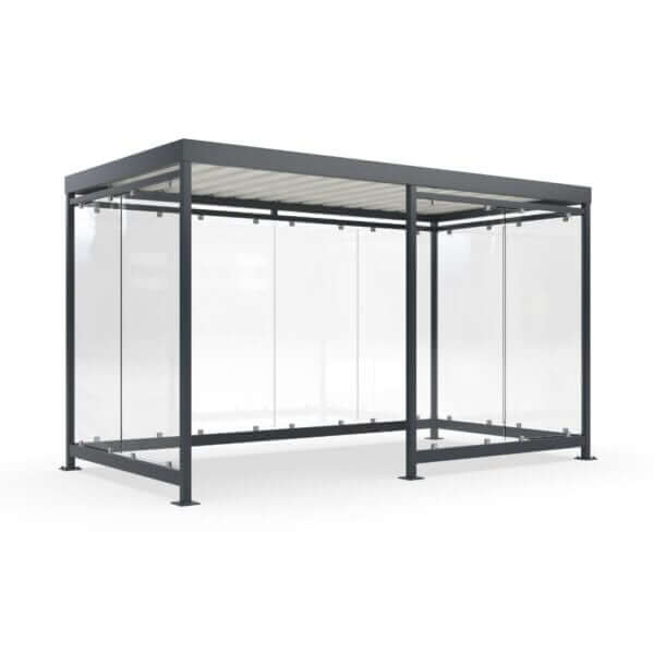 De Rokersoverkapping Keulen is modulair opgebouwd en biedt volop mogelijkheden voor maatwerk. Standaard is de overkapping uitgevoerd met ESG-veiligheidsglas, maar er zijn diverse alternatieve wandafwerkingen beschikbaar, waaronder: