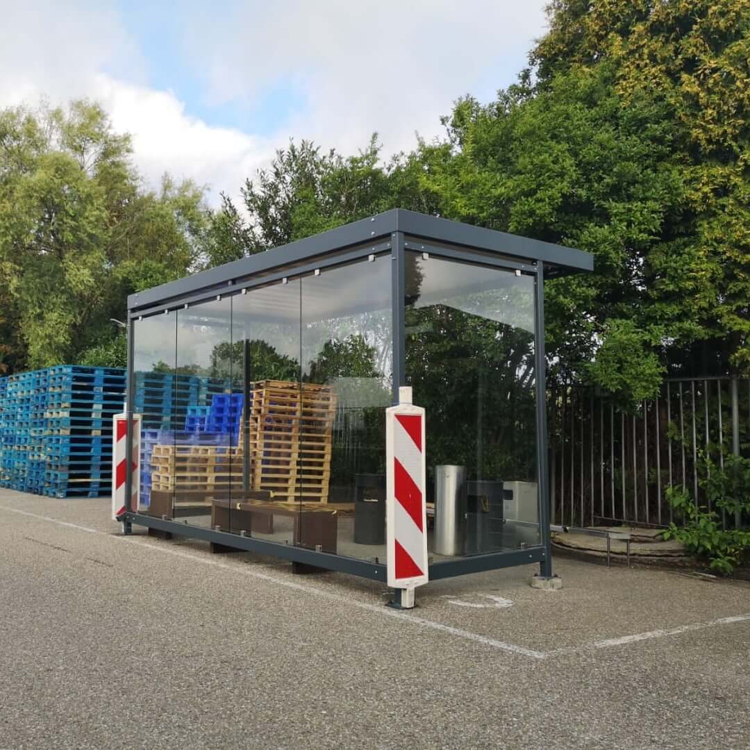 Standaard is de rookabri Keulen uitgerust met ESG-veiligheidsglas voor optimale transparantie en veiligheid. Afhankelijk van de wensen kunnen ook andere materialen of combinaties worden toegepast: